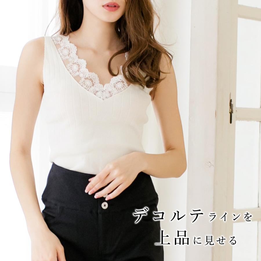 レディースに人気の深いvネックニットのインナーにおすすめなレースタンクトップの画像 タンクトップ レディース トップ インナー